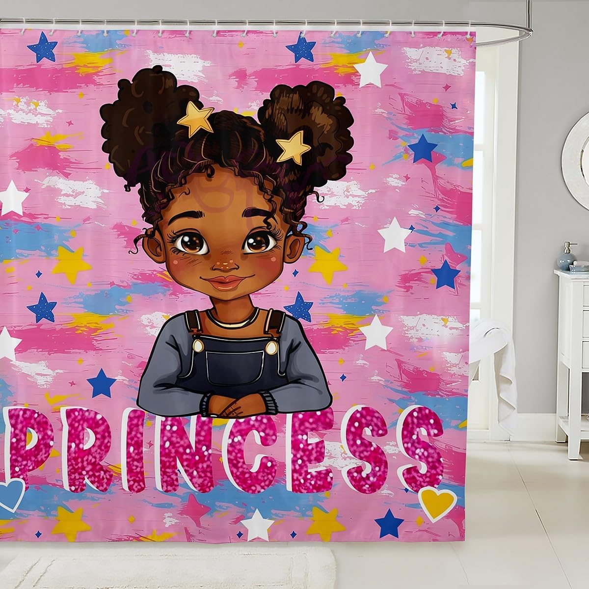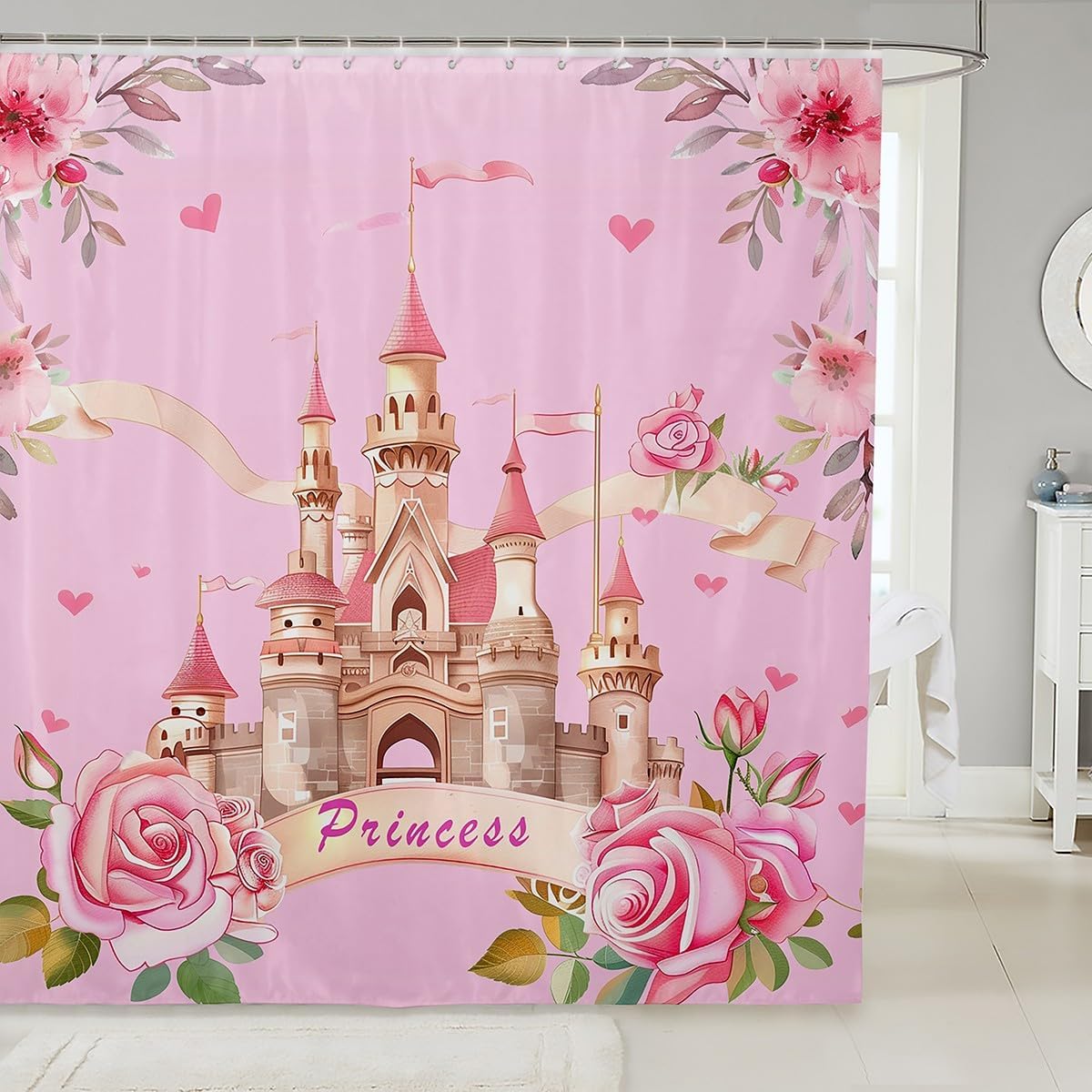 | Fabric Type | 100% Polyester Fabric. Shower Hooks Are Included. |